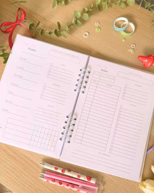Transform your days with our Planner Collection. Designed to help you stay organized, focused, and inspired, each planner offers a structured layout to guide you through your monthly, weekly, and daily goals. ⋆。‧˚ʚ🍓ɞ˚‧。
